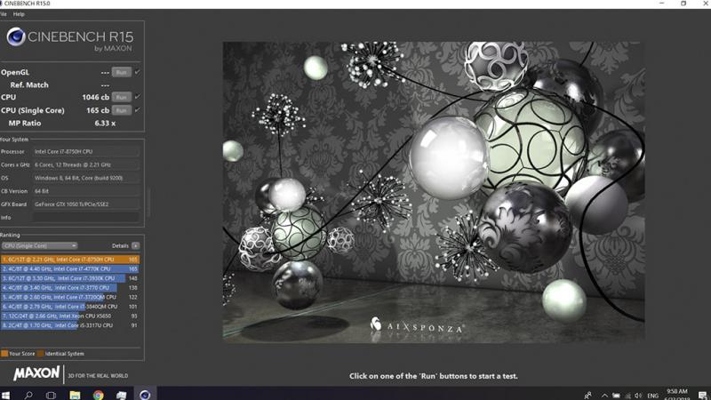 - Cinebench phiên bản UX580 cho ra điểm số cao hơn 10% so với bộ vi xử lý i7-7700K dành cho máy tính để bàn, điều này cho thấy hiệu năng của máy có thể đáp ứng được những tác vụ đồ họa nặng như biên tập Video hoặc chỉnh sửa ảnh.