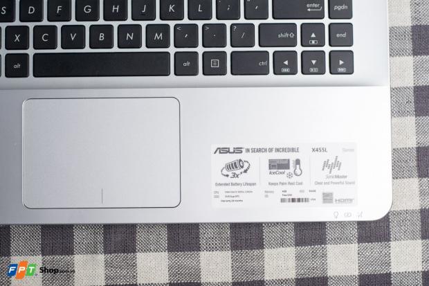 Trải nghiệm cho thấy touchpad của ASUS X455LA-WX470D khá chắc chắn, cho cảm giác nhấn êm. Tuy nhiên bề mặt của touchpad không được mượt mà lắm mà còn hơi rít. Mặc dù không ảnh hưởng quá nhiều đến trải nghiệm, nhưng đây rõ ràng là một điểm trừ không đáng có.