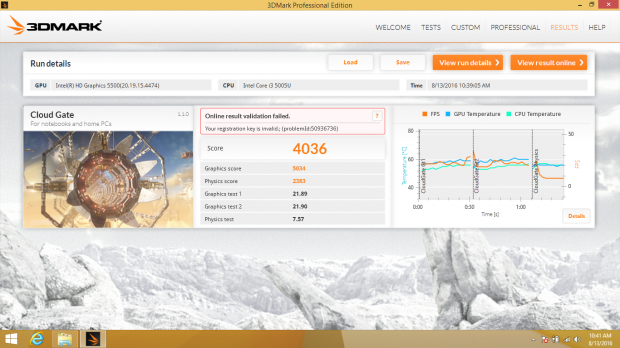 Cụ thể hơn, với công nghệ PCMark 8 đánh giá hiệu năng tổng thể, ASUS X455LA-WX470D đạt 2780 điểm trong phép thử Home và 3054 điểm trong phép thử Creative. Trong phép đo hiệu năng đồ họa 3DMark Cloud Gate, sản phẩm đạt 5034 điểm Graphics, 2383 điểm Physics. Còn với Cinebench R15 kiểm tra khả năng dựng hình 3D của bộ xử lý (CPU) và đồ họa tích hợp, thiết bị của chúng ta đạt 82 cb trong phép thử đơn nhân (Single Core), 209 cb trong phép thử đa nhân và tốc độ dựng hình đạt 22,74 fps ở phép thử OpenGL.