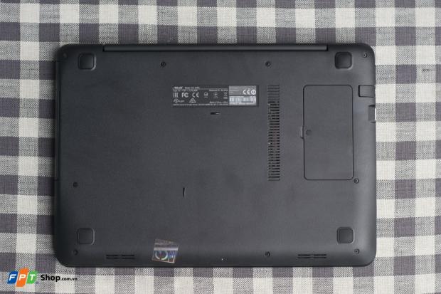 Mặt dưới của ASUS X455LA-WX470D vẫn được làm bằng nhựa với khe hút gió khá lớn đặt ở giữa thân máy, khe thoát nhiệt được đặt ở ngay phía sau bản lề giúp nhiệt lượng được thoát ra ngoài một cách hiệu quả nhất mà không gây ảnh hưởng đến trải nghiệm người dùng. Còn ở cạnh trước là nơi đặt hệ thống loa ngoài kép với công nghệ âm thanh Sonic Master hứa hẹn cho những phút giây giải trí tuyệt vời hơn.