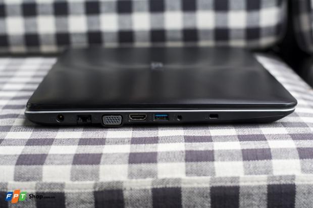 ASUS X455LA-WX470D được trang bị đầy đủ các cổng kết nối cần thiết bao gồm 1 cổng âm thanh 3.5mm, 1 cổng VGA, 1 cổng USB 3.0, 2 cổng USB 2.0, 1 cổng LAN RJ45, 1 cổng HDMI và 1 ổ DVD-RW. Hầu hết những sản phẩm laptop trên thị trường đều đang cố gắng loại bỏ đầu đọc đĩa và một số cổng kết nối nhằm tối ưu độ mỏng và trọng lượng thì ASUS X455LA-WX470D vẫn được trang bị đầy đủ các cổng nhằm mang đến tiện ích tối đa cho người dùng. Trong tầm giá của sản phẩm, cái người dùng mong muốn là sự tiện dụng chứ không phải kích thước mỏng nhẹ.