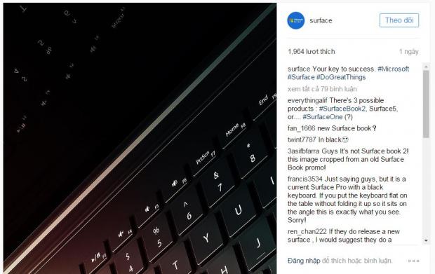Với tiêu đề “Suface – Chìa khóa thành công của bạn” một bức ảnh được cho là của Surface Book 2 đã được chia sẻ trên Instagram. Bức ảnh cho thấy một thiết kế bản lề hoàn toàn mới nhưng các phím bấm thì rất giống với thế hệ tiền nhiệm.