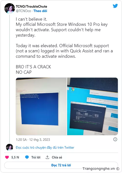 Sau khi bỏ tiền mua giấy phép Windows 10 chính hãng trên Microsoft Store, YouTuber toàn thời gian người Nam Phi Wesley Pyburn đã phải đối mặt với sự thật khó chịu là anh ấy không thể kích hoạt bản cài đặt Windows của mình. Anh ấy đã liên hệ với Microsoft, nhưng ngay cả các kỹ thuật viên hỗ trợ chính thức cũng không thể giúp anh ấy khởi động.![]()