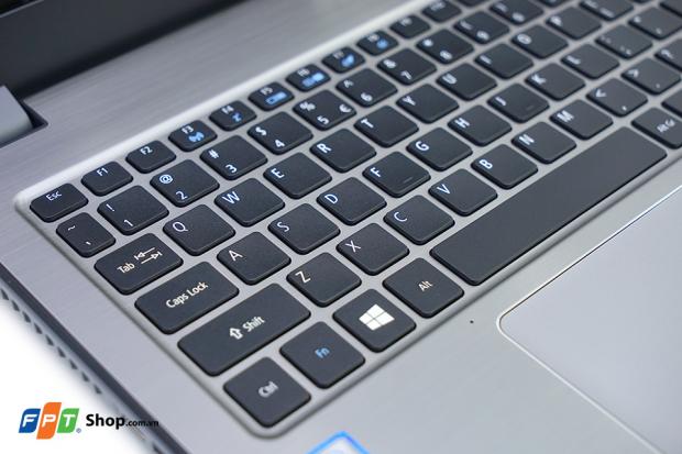 Bàn phím trên Aspire F5 có kích thước phím lớn, phím bấm êm, hành trình phím đủ sâu (1.7 mm) cùng độ đàn hồi tốt giúp gõ văn bản nhanh hơn. Ngoài ra bàn phím của máy còn có đèn blacklit trắng bên dưới giúp sinh viên có thể làm việc trong đêm, một ưu điểm khá lớn so với các máy cùng phân khúc.
