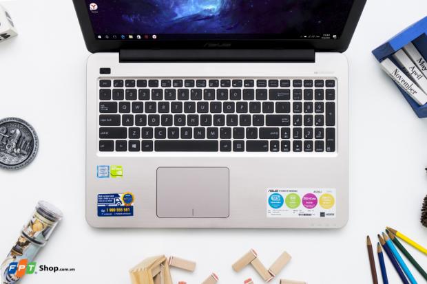 Bàn phím chiclet trên Asus A556U là bàn phím Full-Size có phím bấm rộng, kích thước lớn, hành trình phím đủ sâu (1.6 mm) nhưng độ đàn hồi chưa tốt, cảm giác bấm phím chưa thật sự thoải mái. Nhìn chung khả năng soạn thảo văn bản trên A556U ở mức khá, đáp ứng nhu cầu cơ bản của bạn.
