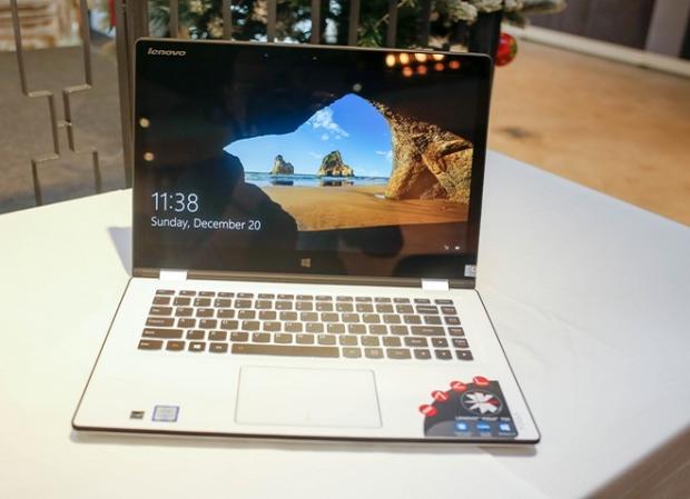 Yoga 900 ra mắt, dự đoán đây sẽ là chiếc laptop mỏng nhất thế giới, với độ dày chỉ 14,9mm sử dụng chip Intel Core i thế hệ mới nhất. Sản phẩm được trang bị thiết kế vỏ nhôm với hai màu bạc và vàng kim. Điểm nhấn của chiếc laptop cao cấp này là phần bản lề được thiết kế cơ khí, lấy cảm hứng từ dây đeo đồng hồ.