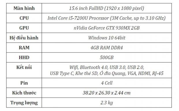Dưới đây là bảng cấu hình chi tiết của máy.