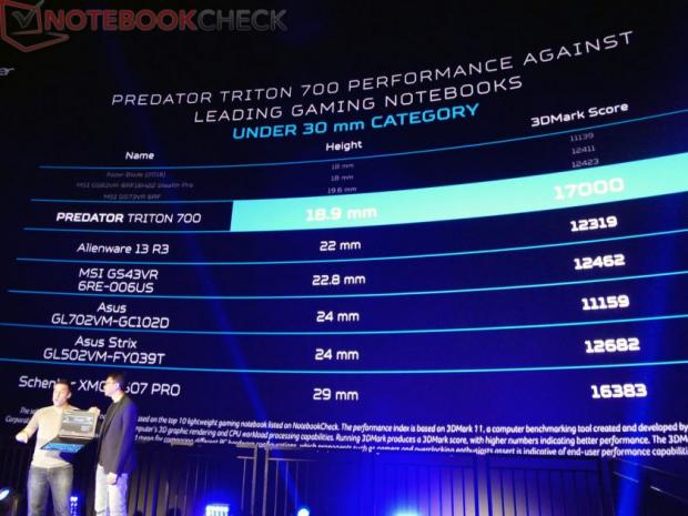 Acer Predator Triton 700 cân nặng chỉ 2.6kg, quá nhẹ cho một gaming laptop, để làm được điều này, Acer không chỉ sử dụng giải pháp tản nhiệt AeroBlade hoàn toàn mới, mà còn phải dùng đến một phiên bản GTX 1080 với tên gọi là GTX 1080 Max-Q. Max-Q có cùng dung lượng bộ nhớ 8GB GDDR5X như bản thông thường nhưng xung nhịp được hạ thấp xuống một chút nhằm giúp tiết kiệm năng lượng.