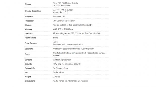 Thông tin chi tiết về cấu hình Surface Laptop:
