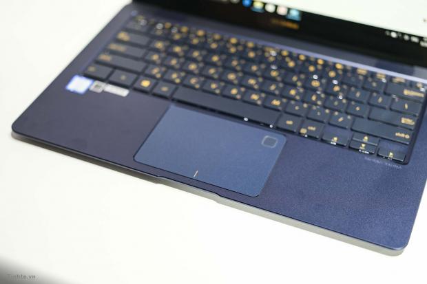 Bàn phím đảo kích thước lớn, khá sát. Bàn rê chuột rờ rất mượt do mặt trên là kính. Cảm biến vân tay được để trên phía góc phải của bàn ghê, rất dễ tiếp cận.
