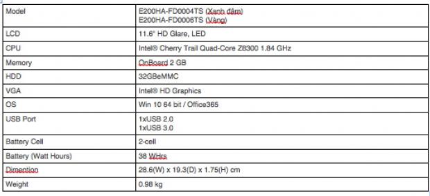 Một số thông tin cấu hình cơ bản như dùng chip Intel Atom x5-Z8300, màn hình HD kích thước 11,6 inches độ phân giải 1366x768 pixel, đi cùng 2Gb bộ nhớ RAM và ổ cứng 32Gb lưu trữ. Với thời lượng pin lên tới 14h sử dụng cho các tính năng giải trí cơ bản, điều này ngang ngửa một số dòng Chromebook hiện nay.