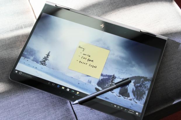 Chiếc laptop HP Spectre x360 có kích thước 13,3 inch này là phiên bản 2-trong-1, tức người dùng có thể xoay màn hình ngược về sau đến 360 độ. Kết hợp với màn hình cảm ứng có độ phân giải lên tới 4K (3840 x 2160 pixels), chiếc laptop này biến thành một chiếc tablet.