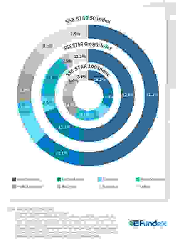 Trong khi Chỉ số SSE STAR 50 bao gồm 50 công ty lớn nhất với giá trị vốn hóa thị trường trung bình đạt mức 6,4 tỷ USD thì Chỉ số Tăng trưởng SSE STAR thể hiện rõ nét tiềm năng tăng trưởng của các thành phần và đã chọn ra 50 cổ phiếu có tốc độ tăng trưởng doanh thu hoạt động cũng như lợi nhuận ròng cao hơn.