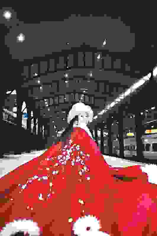 A tourist dresses up and poses for photos at Harbin Railway Station. [Provided to China Daily]