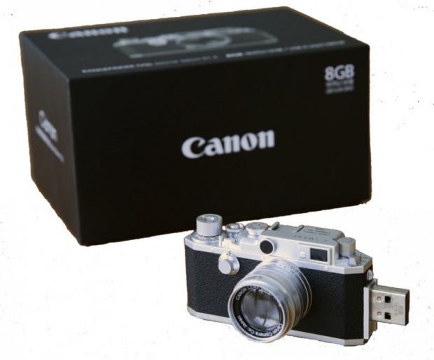 Chiếc USB mới này của Canon có kích thước 2,8×1,4×1,4 inch và cực kì giống với những chiếc máy ảnh cổ[/b] kính. Nó được làm bằng chất liệu nhựa cùng kim loại. Dung lượng lưu trữ chỉ có 8GB.