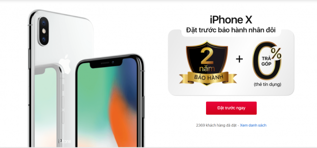 Hiện tại, người dùng thích iPhone X đã có thể đặt trước tại , giá chỉ từ 29.990.000 VNĐ trong thời gian từ 1/12/2017 cho đến 7/12/2017 - Ngay khi kết thúc, dự kiến thời gian trả hàng sẽ là 8/12/2017. Khách hàng giờ đây có thể đến hệ thống bất kỳ trên toàn quốc để tiến hành đặt cọc, số tiền tối thiểu là 1.000.000 VNĐ.