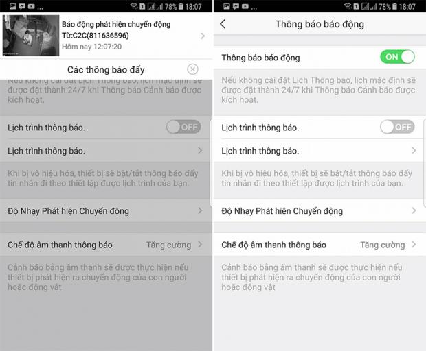 Một tính năng thú vị và hữu ích có trên C2C HD 720P chính là cảnh báo chuyển động, nếu vùng quan sát có chuyển động (người, vật, phương tiện) thì hệ thống sẽ lập tức báo động và gửi thông tin về thiết bị đã kết nối trước đó với camera.