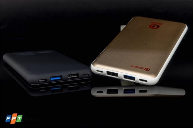 Có các màu tùy chọn gồm Đen - Xám, Trắng - Vàng Gold và Trắng - Bạc để người dùng thỏa sức lựa chọn. Với cổng USB Type C (Input), thiết bị hoàn toàn tương thích với các bộ sạc sử dụng công nghệ Quick Charge, giúp rút ngắn thời gian sạc đầy viên pin chỉ vọn vẹn khoảng 4 tiếng. Đặc biệt cổng USB (Output) được thiết kế với dạng 2 mặt, giúp chúng ta có thể thoải mái ghim sạc mà không lo cắm nhằm như các sản phẩm thông thường.