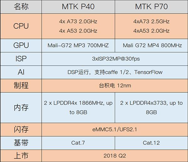 Helio P70 hỗ trợ tối đa 8 GB RAM LPDDR4x, chuẩn LTE Cat.12 và cũng có những khả năng về AI giống như Helio P40.