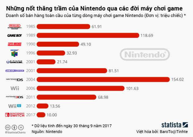 Mời các bạn xem chi tiết những nốt thăng trầm của Nintendo qua các đời máy chơi game trong infographic sau đây!