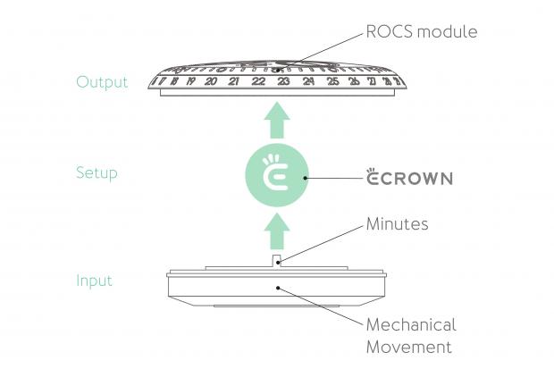 Ressence sử dụng công nghệ mà họ gọi là e-Crown để tự điều chỉnh các bộ phận chuyển động cơ khí bên trong đồng hồ thông qua smartphone đã kết nối.