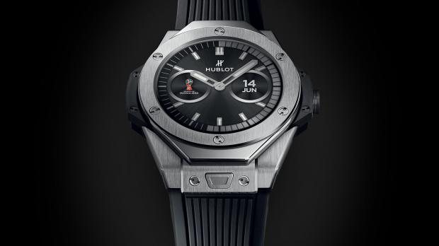 - Dây đi kèm: dây cao su và dây vải thể thao với logo Hublot và biểu tượng FIFA 2018