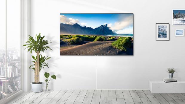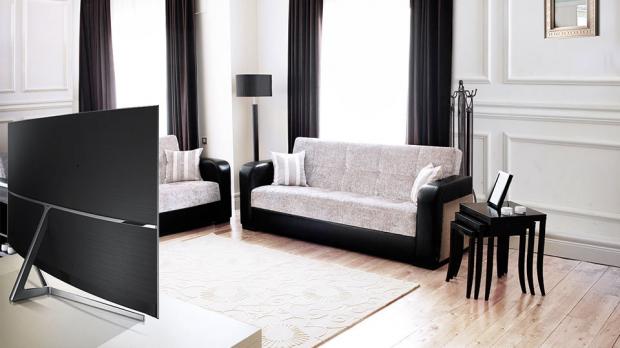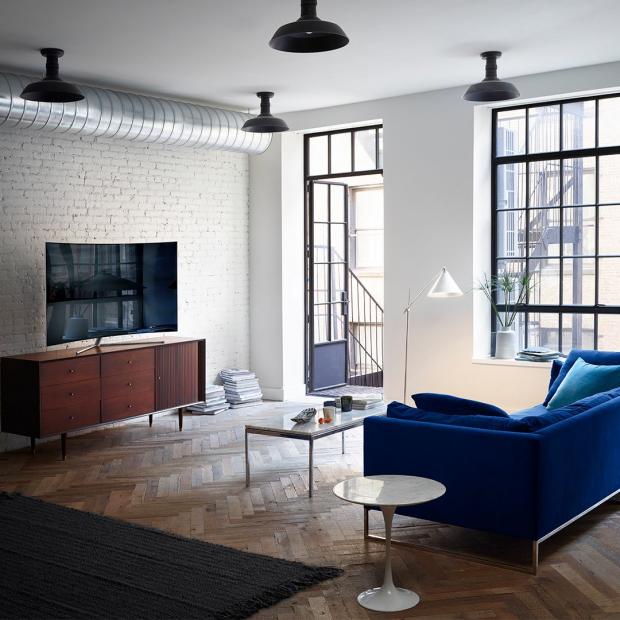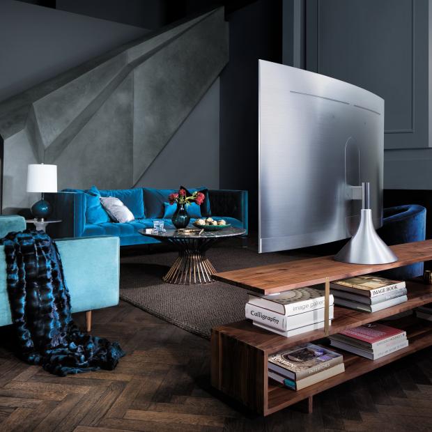 TV Samsung QLED màn hình cong làm mềm mại một góc tường nhà