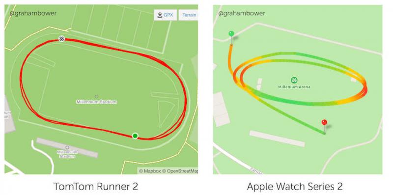 Trong một bài thử nghiệm, một số người dùng đã nhận ra rằng cứ mỗi 4 giây trôi qua, Apple sẽ ghi nhận dữ liệu từ GPS và chấm 1 điểm trên bản đồ. Trong khi đó, với đồng hồ chuyên dụng cho tập luyện như thể thao như Garmin Fenix 5, cứ 3 giây trôi qua sẽ chấm 1 điểm trên bản đồ. Đặc biệt hơn nữa là đồng hồ TomTom Runner sẽ chấm 1 điểm trên bản đồ sau mỗi giây.