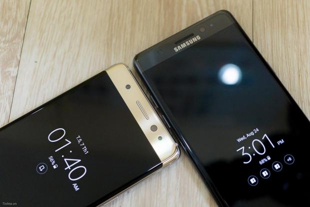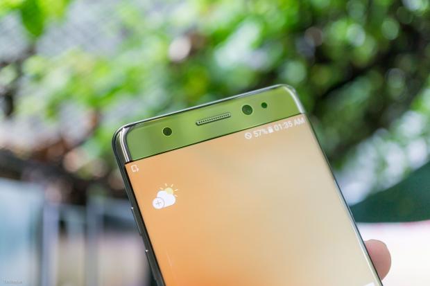 Đây là Galaxy Note7 phiên bản Hàn Quốc với điểm khác biệt lớn nhất so với bản chính hãng của VN đó là mặt trước không có logo Samsung. Ngoài ra chiếc máy này cũng chỉ gắn được một SIM thay vì hai SIM như bản VN. Cách đóng gói, phụ kiện theo máy cũng không có gì khác biệt. Logo Samsung ở mặt trước nằm tại một vị trí khá chật hẹp đó là bên dưới loa thoại và bên trên màn hình. Xung quanh khu vực này còn rất nhiều các thành phần khác như camera trước và đủ các loại cảm biến thường thấy. Nhờ bỏ bớt logo mà phía trên màn hình trông thoáng hơn hẳn, nhìn máy cũng bớt nặng nề hơn.