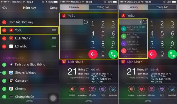Khi iPhone của bạn đang khoá màn hình hoặc đang ở trong bất kì ứng dụng nào, nếu bạn muốn gọi nhanh cho một ai đó thì chỉ cần vuốt thanh thông báo xuống và quay số, không cần phải bấm trở ra màn hình Home rồi mới thao tác. Để làm được thì các bạn tải về ứng dụng Yobu hoàn toàn miễn phí tại đây.