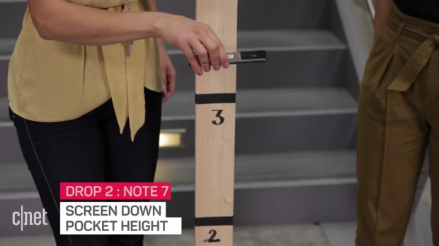 Trong video test trên đây, 2 ứng cứ viên Samsung Galaxy Note 7 và S7 edge sẽ cùng nhau drop test ở các độ cao tương ứng với vị trí đầu gối, túi quần hay vai. Ở lượt thả úp màn hình xuống, có vẻ như S7 edge cũng như Note 7 dễ dàng sống sót cả với độ cao 1 mét 6, tương đương với độ cao theo Corning đã quảng cáo.