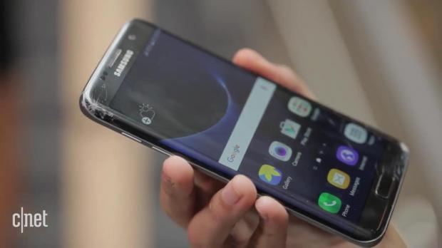 Tuy nhiên, khi thay đổi vị trí tiếp xúc sang cạnh bên, S7 edge đã bị vỡ ngay lập tức ở phần viền.