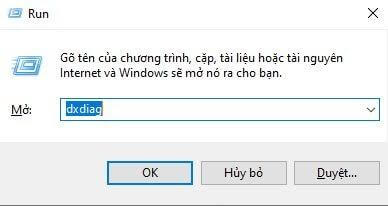 Bước 1: Nhấn tổ hợp phím Windows + R để mở hộp thoại RUN, sau đó nhập 'dxdiag' và nhấn OK, bạn nhấn Yes khi có thông báo xuất hiện.