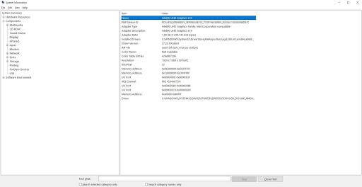 Bước 2: Chọn Components sau đó chọn Display để xem card màn hình