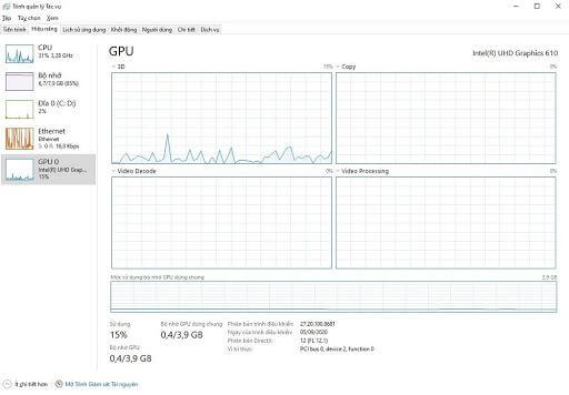 Lưu ý: Nếu tên card là ATI, NVIDIA, AMD thì đó là card màn hình rời. Thông thường máy chỉ chạy card màn hình onboard, nếu bạn đang sử dụng các tác vụ nặng thì máy sẽ sử dụng card rời (nếu có).