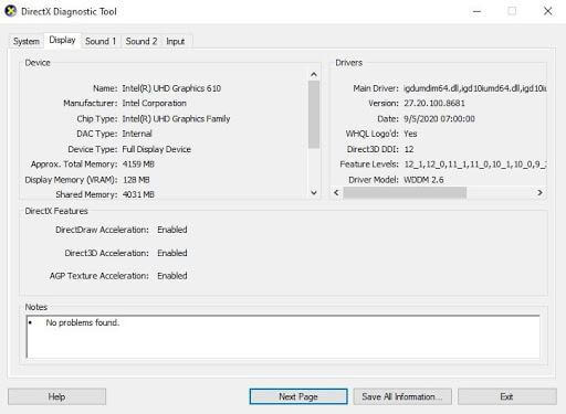 1. Cách kiểm tra card màn hình bằng DirectX Diagnostic Tool