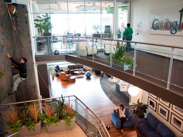 Cơ sở vật chất của Google thì khỏi phải bàn. Bên trong văn phòng có cả những bức tường để tập leo núi, các khu nhà được thiết kế bởi các kiến trúc sư nổi tiếng, tầm nhìn ra các khu vực xung quanh cũng rất đẹp mắt.
