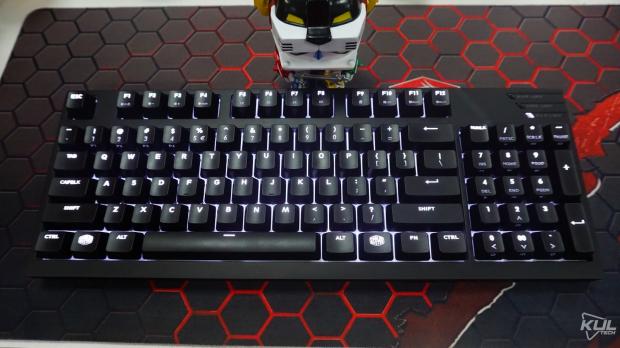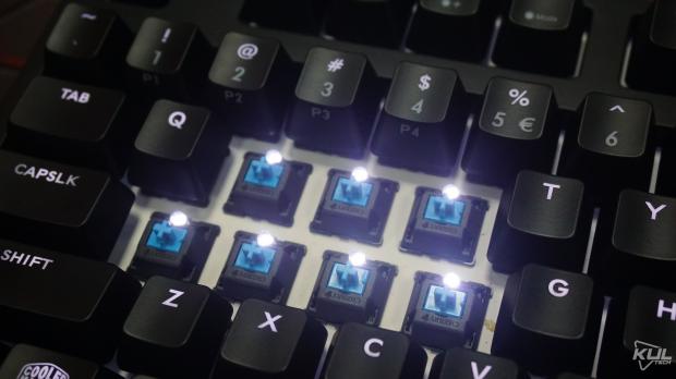 Pro M sáng rực với LED trắngPro M phiên bản Kul có trong tay sử dụng switch Blue của Cherry MX khá quen thuộc với giới chơi game. Tiếng clicky của Pro M nghe khá to và chắc, nếu bạn thích tiếng ồn thì chiếc bàn phím của Cooler Master có thể đáp ứng tốt điều này cho bạn.