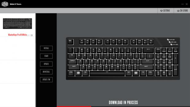 Trong buổi họp báo hồi ngày 27/7, Cooler Master Việt Nam cho hay các thiết bị gaming gear của hãng có thể quản lý bằng phần mềm chung là CM Portal. Tuy nhiên, hiện tại Masterkeys Pro M vẫn chưa được hỗ trợ đầy đủ khi các tùy chọn đều bị ẩn. Vì vậy, mọi thao tác chỉnh LED đều phải thực hiện bằng tay.