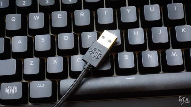Thiết kế nhỏ gọn của Pro M và cáp đi theo là cáp rời Đầu cáp được mạ vàng và được gia công khá tinh tế Cooler Master tặng kèm KeypullerĐiểm đáng chú ý tiếp theo, Cooler Master đã thực hiện vát phần chứa đèn tín hiệu (Num Lock, Caps Lock, Scr Lock) xuống, tạo nên sự tách biệt so với phần còn lại. Thiết kế này tạo nên một nét chấm phá khá hay cho Pro M. Ngoài ra, cụm đèn cũng được đặt chéo, trông vô cùng hiện đại.