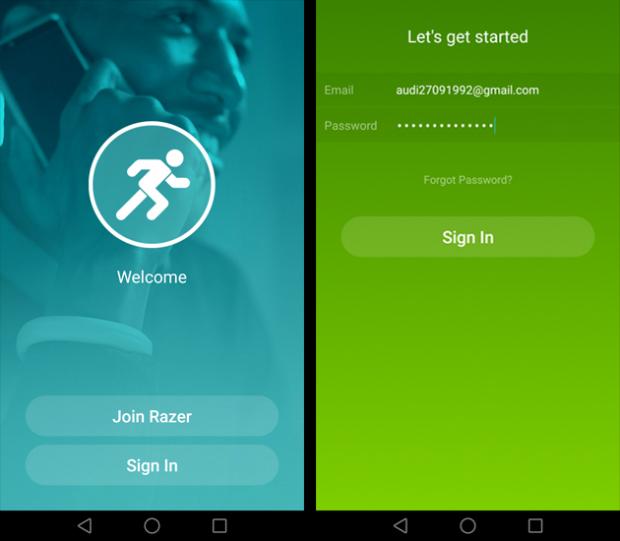 Giao diện khi khởi chạy ứng dụng Nabu lần đầu, bạn cần có tài khoản Razer để sử dụng.