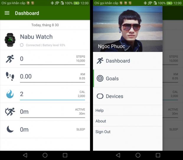 Thông qua ứng dụng Nabu trên Google Play (Android) hoặc App Stores (iOS), bạn có thể quản lý các chỉ số đo sức khỏe mà Nabu Watch hỗ trợ, bao gồm: đếm bước chân, quãng đường đi được, lượng calorie đã tiêu thụ, thời gian ngủ, thời gian vận động, cùng điểm số đạt được mục tiêu bạn đặt ra.