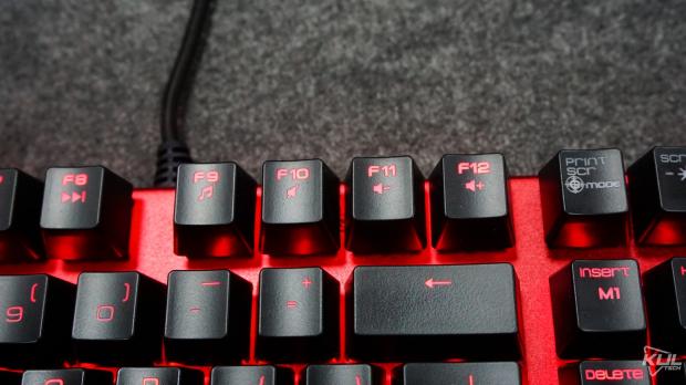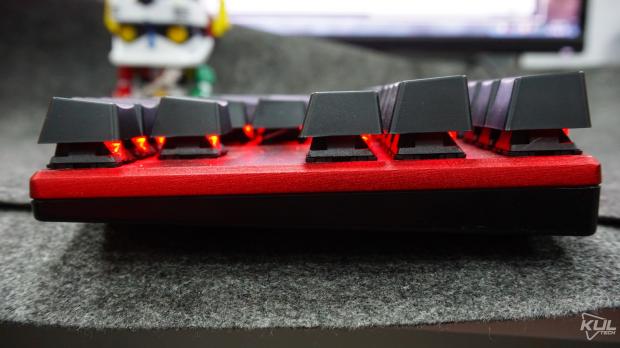 Ngoại hình đỏ rực của Ozone Strike BattleCó hai điều chúng ta thấy được từ thiết kế này., Đầu tiên, trông Strike Battle vô cùng nhỏ gọn, chưa kể tông màu chủ đạo trên chiếc bàn phím của Ozone là màu đỏ khiến người viết liên tưởng ngay đến hình ảnh cô bé quàng khăn đỏ.