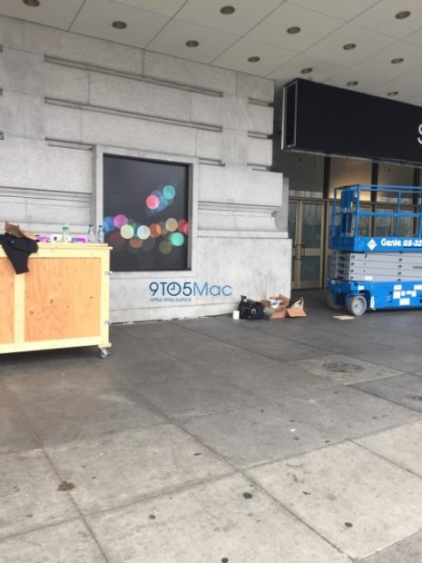 Đến lúc này, hãng Apple đã trang hoàng tòa nhà để chuẩn bị cho sự kiện, với một loạt các lá cờ logo Apple đen trắng, cùng logo quả táo màu trắng lớn ở chính diện tòa nhà, trông như logo các cửa hàng Apple Store. Các tấm poster với họa tiết các vòng tròn bokeh trong thư mời tham gia sự kiện của Apple của đã được treo khắp nơi, cùng tấm bảng có chữ 'Special Event' (sự kiện đặc biệt) trước cổng chính.