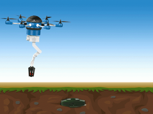 Tháo dỡ bom mìn là một trong những công việc nguy hiểm và căng thẳng nhất thế giới. Và đó là lý do thiết bị bay điều khiển từ xa Mine Kafon Drone ra đời, khi đã gọi đủ vốn trên Kickstarter trong tháng 8 qua. Nó có tác dụng tìm kiếm bom mìn và tiêu diệt chúng hoàn toàn mà không cần có sự tiếp cận của con người.