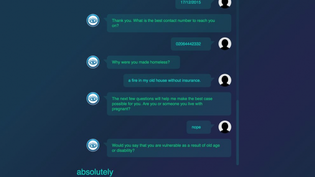 Robot ảo này do sinh viện đại học Stanford Joshua Browder phát minh, mang tên DoNotPay, ban đầu có mục đích giúp người dùng tránh bị ghi thẻ phạt đậu xe quá giờ. Nhưng Browder đã cho ra mắt một robot mới hồi tháng 8, liên kết với Centrepoint, một trong những tổ chức từ thiện hướng đến giới trẻ vô gia cư lớn nhất nước Anh, với mục đích hỗ trợ pháp lý cho họ.