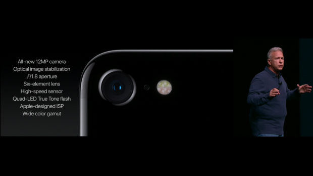 Về thông số kĩ thuật, iPhone 7/7 Plus có camera chính với độ phân giải 12MP, khẩu độ f/1.8, sử dụng 6 thấu kính, hỗ trợ chống rung OIS, bên cạnh đó cụm đèn Flash LED ở mặt lưng có đến 4 đèn khác nhau, trong đó có 2 đèn tông màu ấm, 2 đèn tông màu lạnh, cho độ sáng mạnh hơn đến 50%. Không chỉ nâng cấp về thông số, tốc độ chụp ảnh được tăng lên 60 %, nhưng tiết kiệm được đến 30% năng lượng so với camera của thế hệ iPhone trước. Cùng với đó là khả năng chụp ảnh RAW được trang bị cho bộ đôi này, giúp cho những tấm ảnh có chất lượng tốt hơn. Apple đã nâng cấp bộ xử lý hình ảnh, tăng gấp đôi sức mạnh của nó, phép xử lý nhanh hơn và tốt hơn.