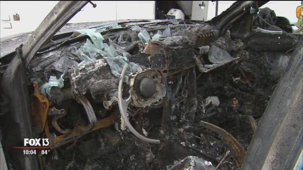 Chiếc SUV của Dornacher chẳng mấy chốc đã thành đống sắt vụn, trước sự ngỡ ngàng của chủ nhân vì không nghỉ một chiếc điện thoại cháy lại có thể thiêu rụi cả một chiếc xe to lớn.