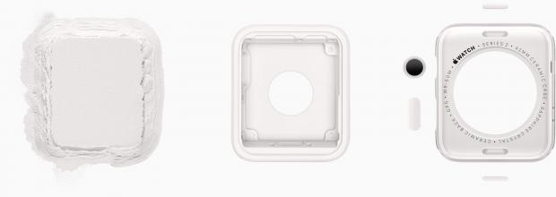 Về loại gốm dùng trong Apple Watch, Apple chọn alumina (nhôm oxide - Al2O3) kết hợp với zirconia. Kết quả là chúng ta có một loại vật liệu không bị trầy và gần như không thể vỡ trong những điều kiện sử dụng bình thường. Hợp chất này cũng là thứ giúp tạo ra màu trắng sữa cho đồng hồ. Apple cũng cho biết thêm rằng Apple Watch Series 2 của họ còn được đánh bóng bằng kim cương để đạt được bề mặt trơn nhẵn.