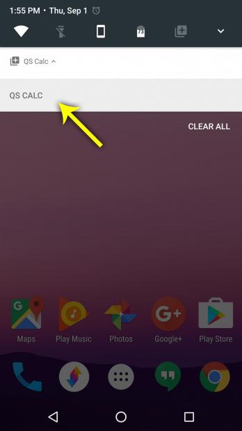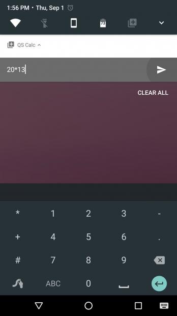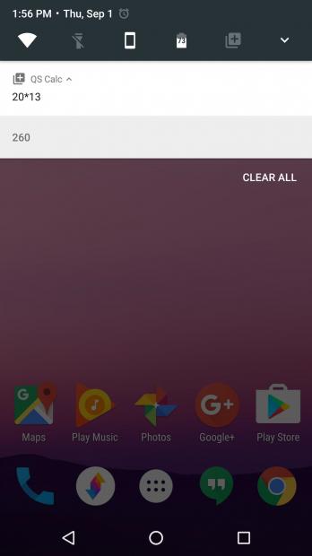 Lưu ý: Quick Settings Calculator có một điểm hay nữa là nó dùng một hàm API mới khác của Nougat quy định về các thông báo tương tác (như trả lời tin nhắn ngay trong thông báo). Điều này có nghĩa là bạn có thể sử dụng máy tính mà không cần nhảy qua ứng dụng máy tính, vì toàn bộ đều nằm trong khu thông báo.